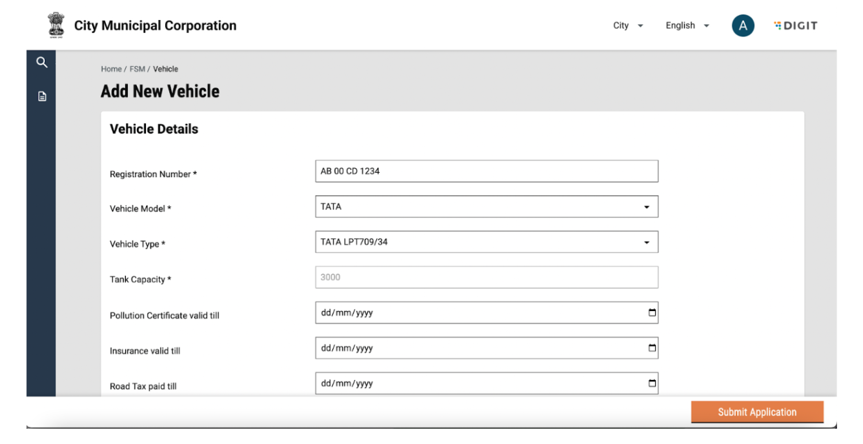 To view the list of Vehicles, the user can navigate to the Vehicle tab from the FSM Registry landing page.