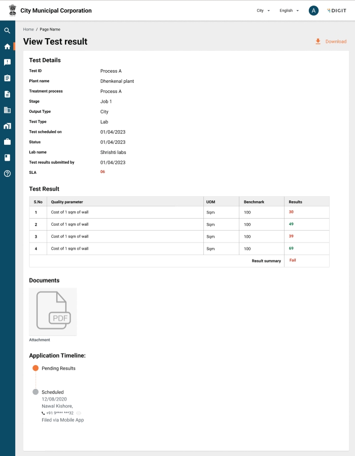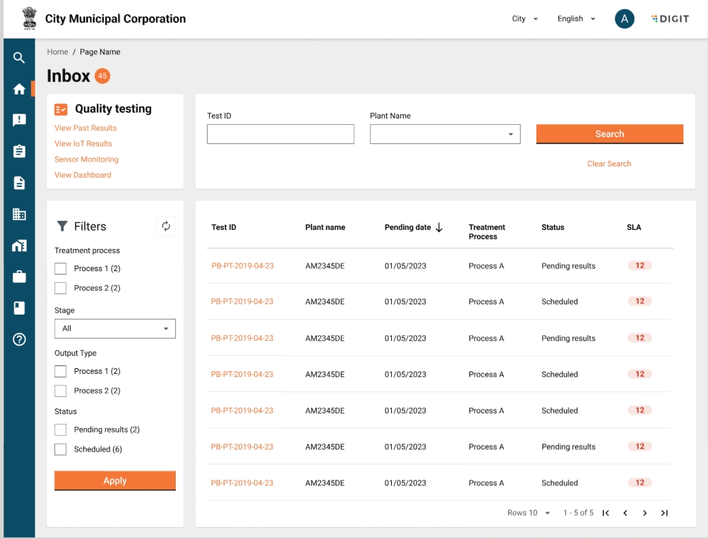 Note: Unlike the plant operator inbox, this inbox is only for visibility purposes. A ULB admin cannot take any action in the tests that are in the inbox.