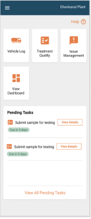 List of pending tasks: This will show the list of tests pending within the next [X] days. The next action item in the task workflow will be displayed beside a pending task for a user to take prompt action. A button for “View All Pending Tasks” will be displayed which will redirect the user to “All Pending Tasks”.