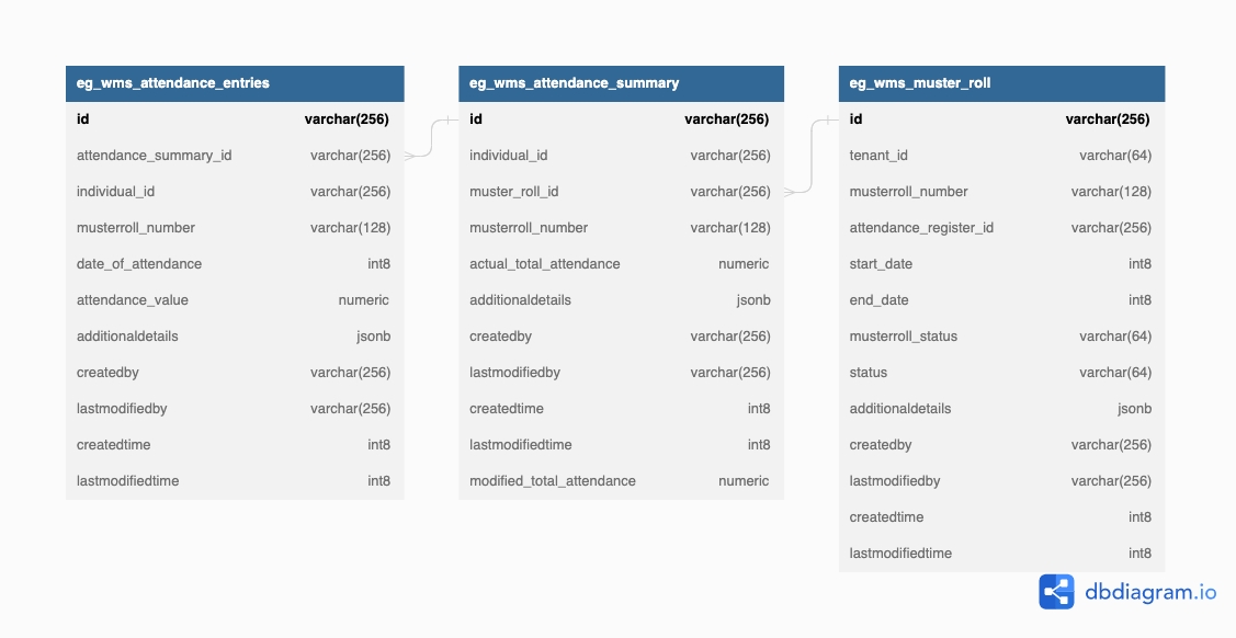 The Muster Roll service aggregates attendance logs from the attendance service based on some rules and presents an attendance aggregate for a time period (week or month) per individual. This can then be used to compute payments or other semantics.