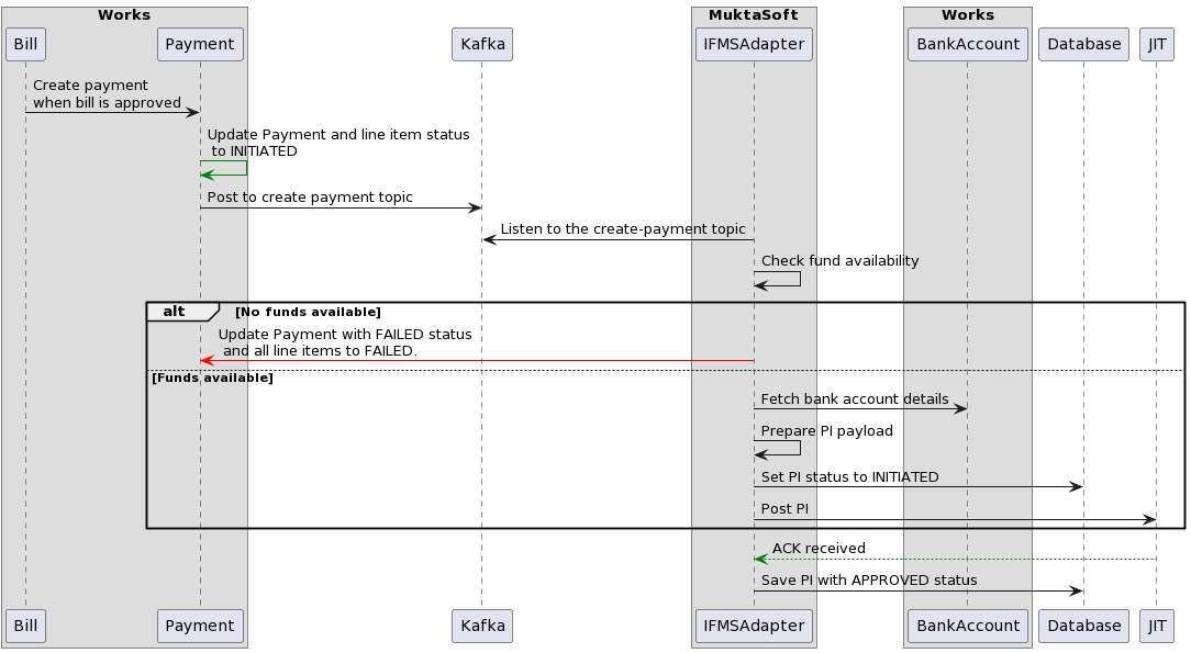 There are consumers who keep listening to the payment create Kafka topic and generate payment instructions (PI) using payment and bill details and post the PI to the IFMS system using JIT API.
