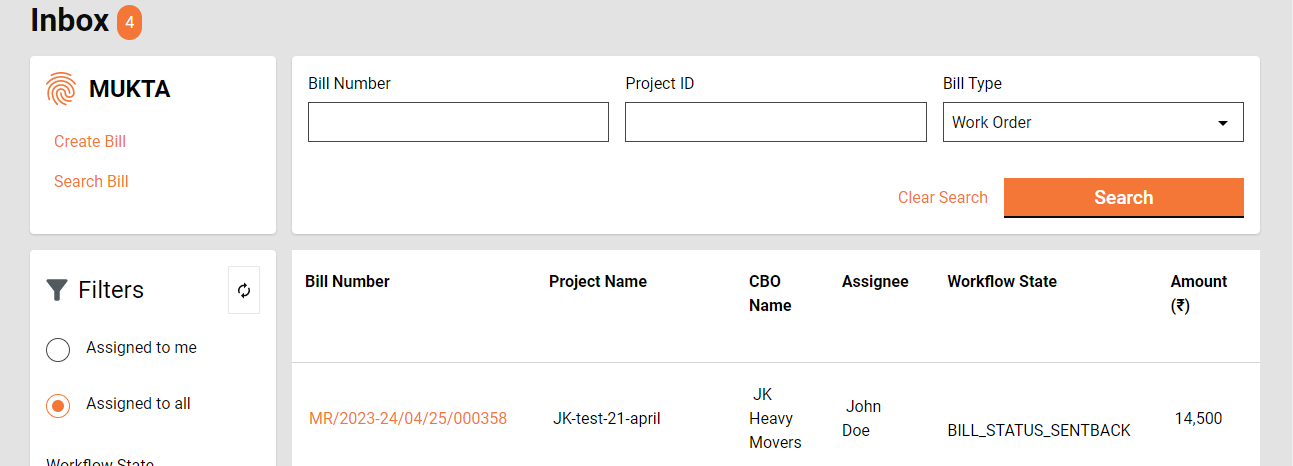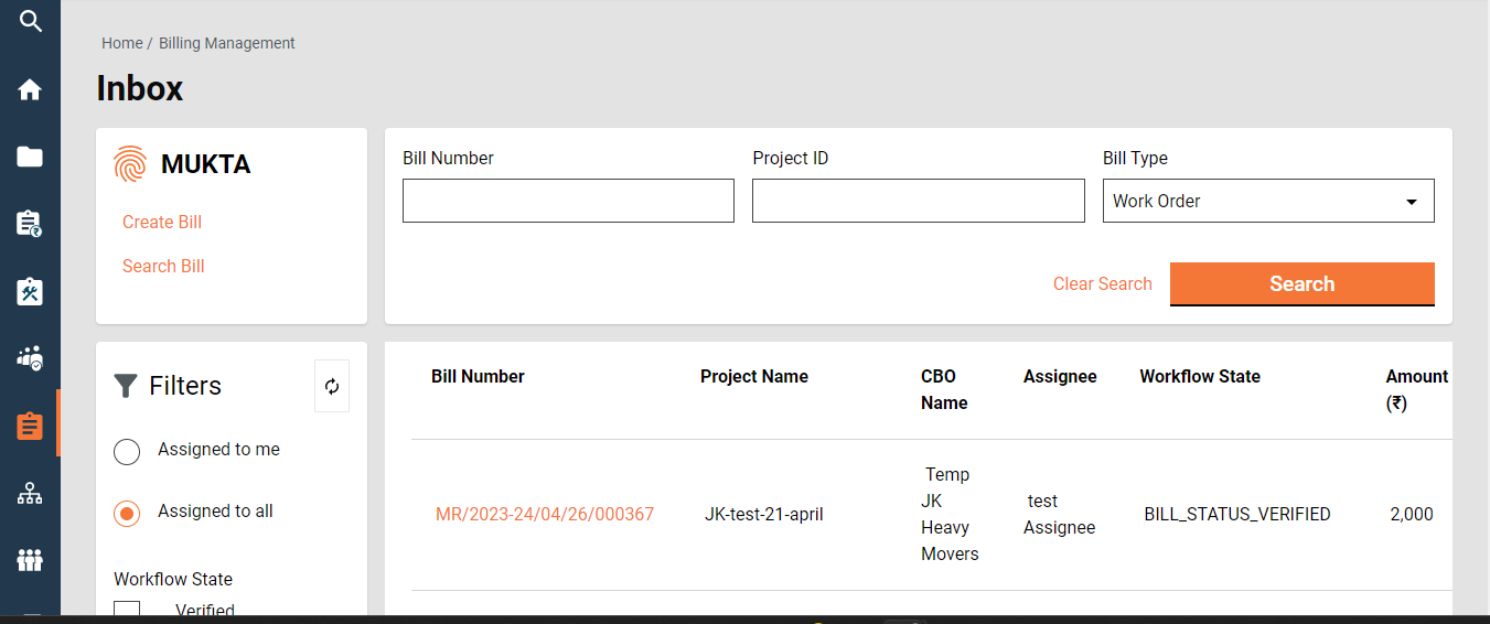 The search Bill enables ULB employees to search for a specific Bill using different search parameters.