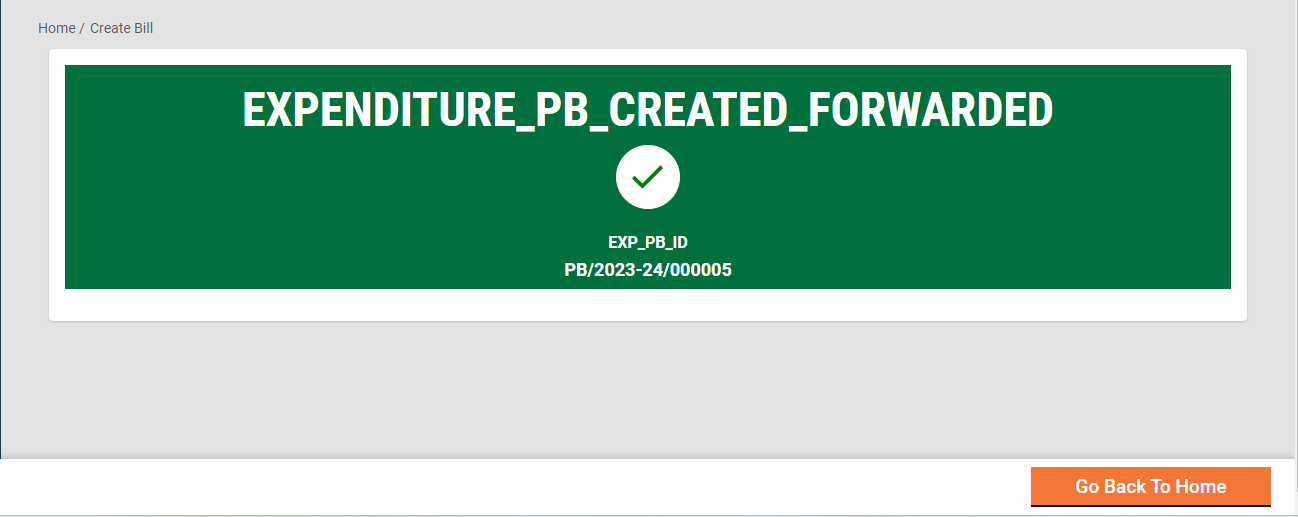 On forward, the bill is forwarded to the verifier and the success page is displayed with the success message and bill number.