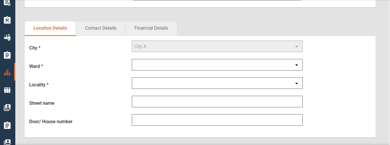 This will display the Search Organisation page where details such as Ward, Organisation Type, Name of the Organisation, Organisation ID needs to be filled.