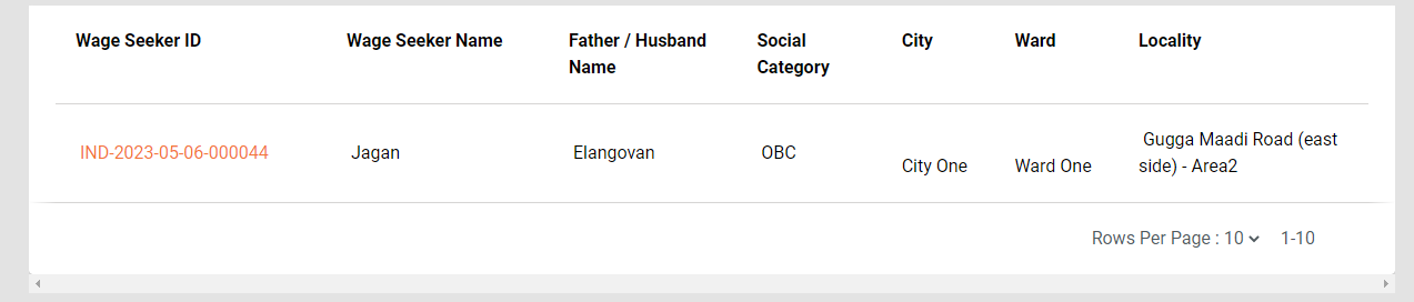 Click on the Wage Seeker ID in orange. This displays the View Wage Seeker option.