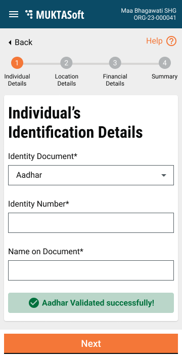 The remaining system is to be integrated with the AADHAAR system to validate the AADHAAR entered. The rest of the document details are captured without validation.