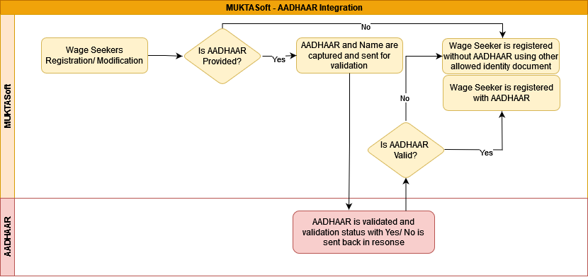 MUKTASoft will be integrated with AADHAAR to uniquely identify the wage seekers and authenticate the AADHAAR number provided during the registration of wage seekers.