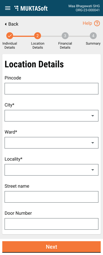 Individual details are divided into the below-given four sections/screens.