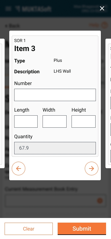 The mobile version of the measurement book allows the user to record the measurement from the ground.
