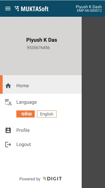 The login screen enables the users to log into the mobile version of the MUKTASoft application.