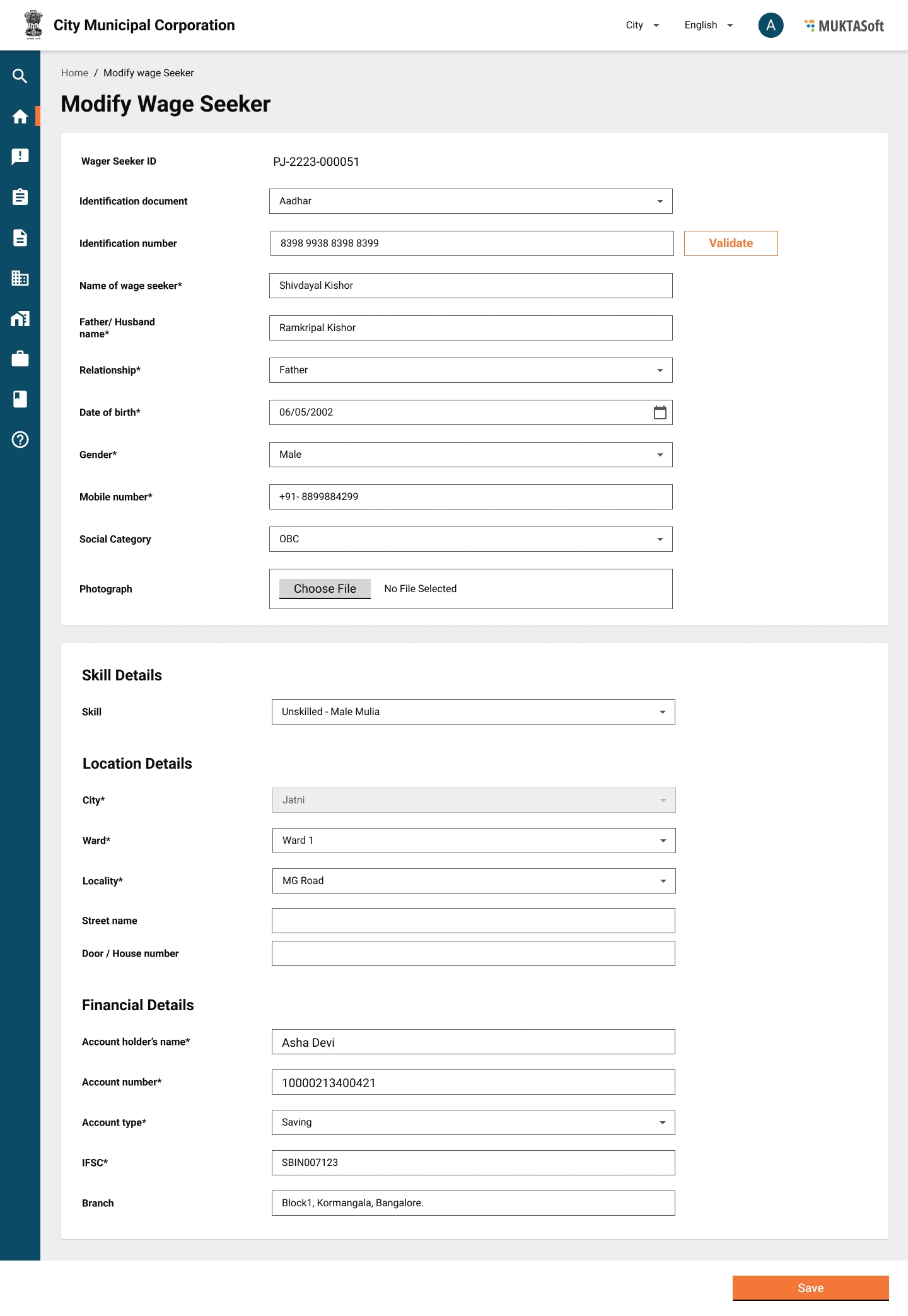 Wage seeker’s modification to be changed to validate the individual’s AADHAAR through AADHAAR integration.