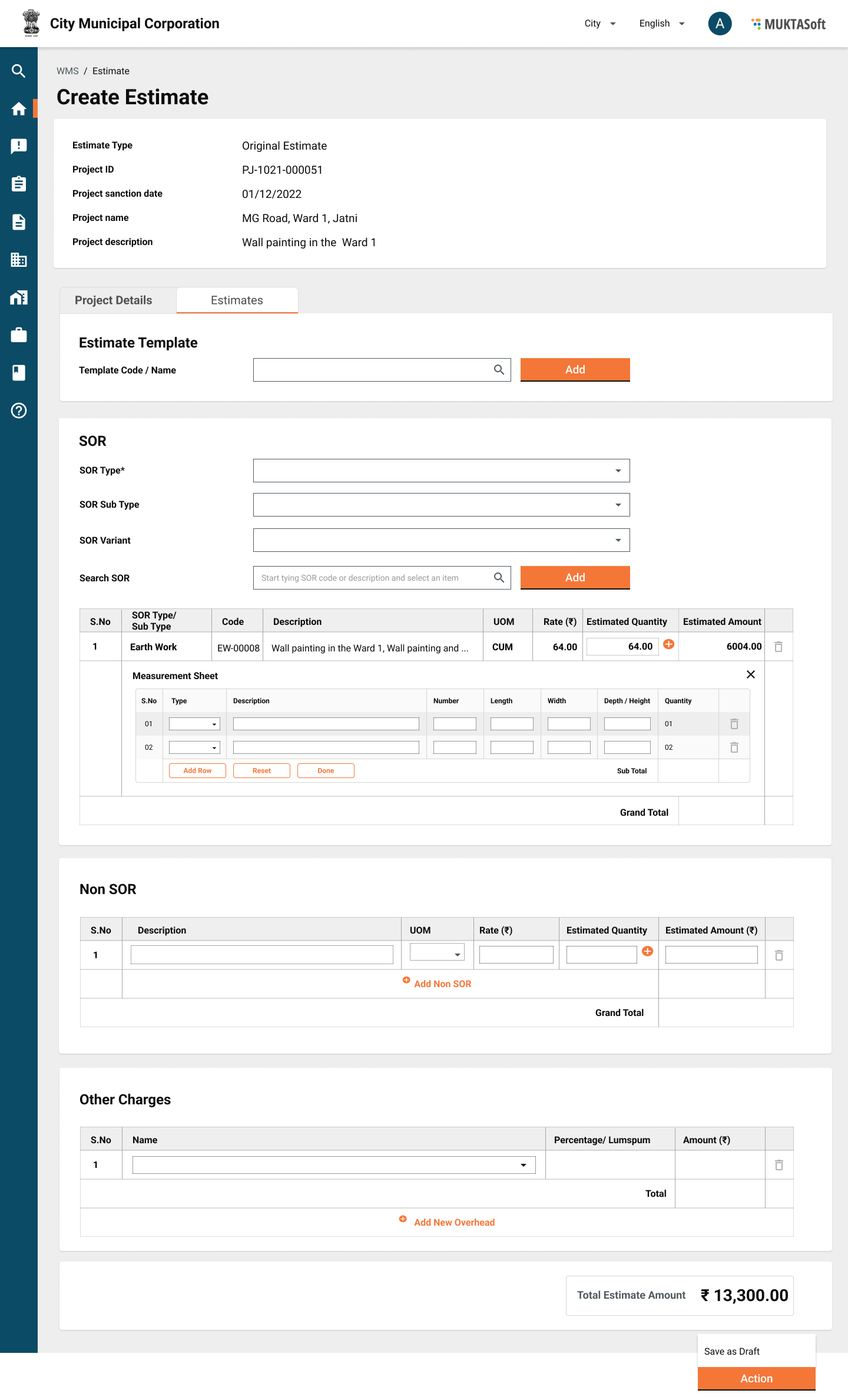 Once a template is searched is added into estimate and hence all the SORs and Non-SORs from template get added to estimate automatically.