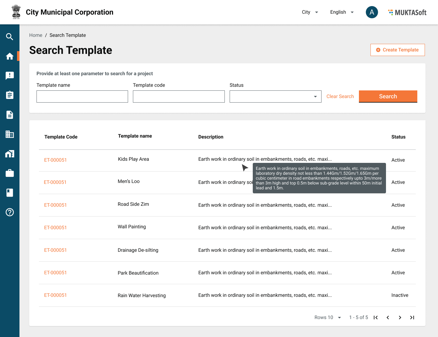 Search Template is provided to list all the template.