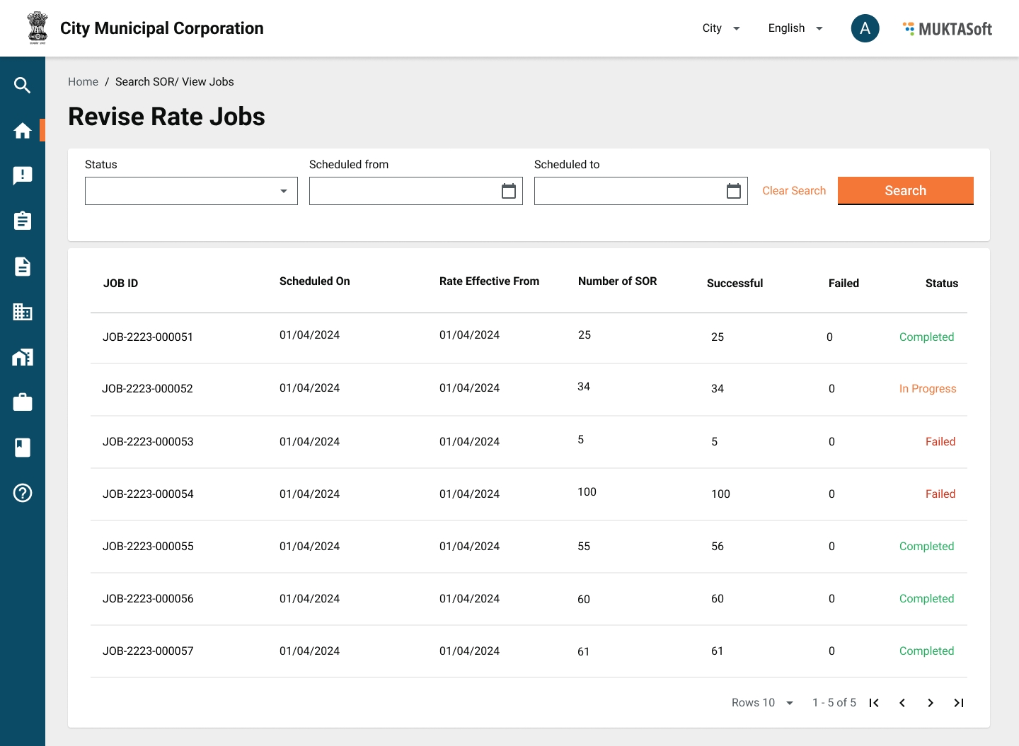 Users can see the progress and status of JOB from view rate revision JOBs screen.