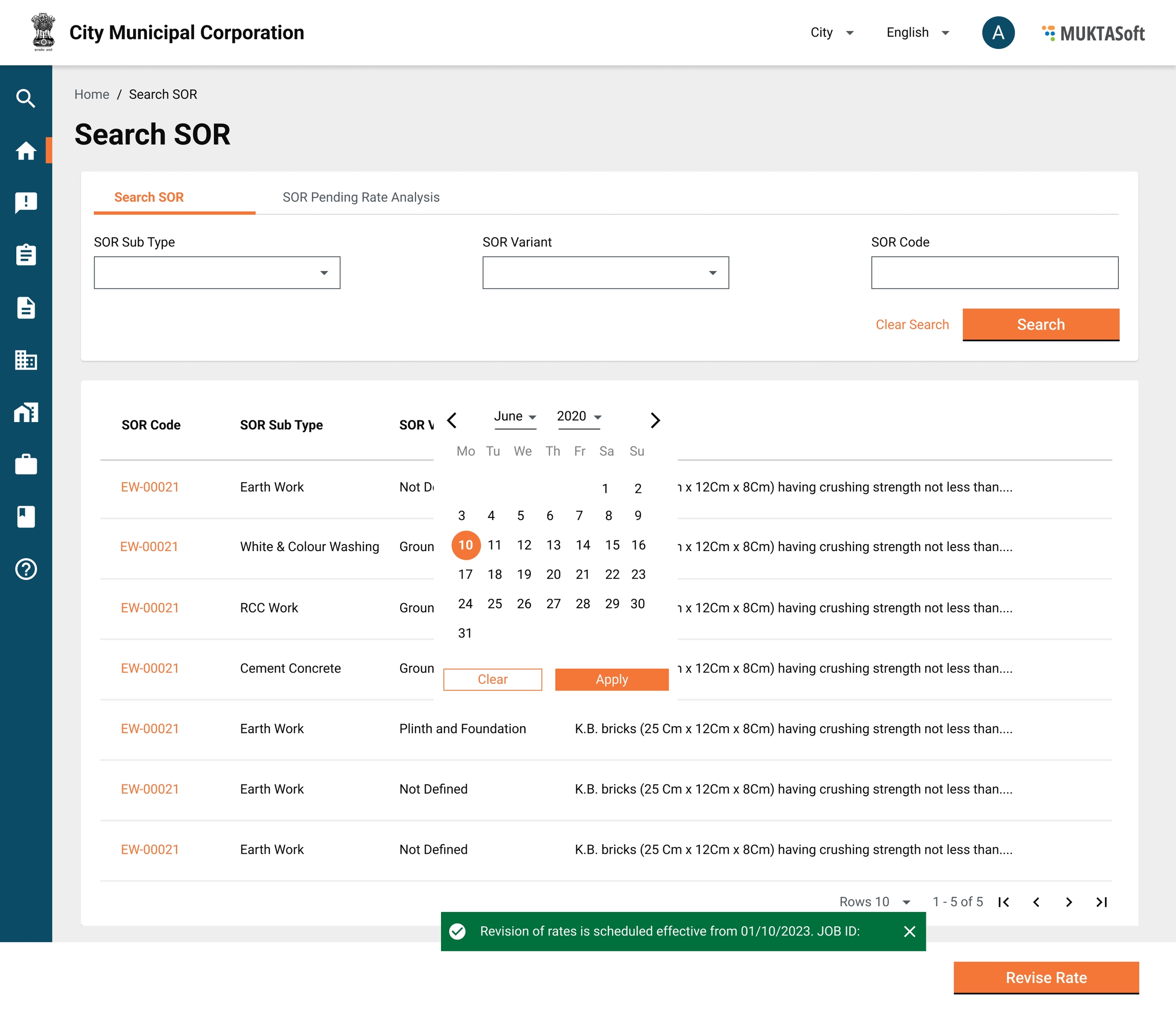 User complete the rate revision of all required material, labour, and machinery SORs using edit SOR rate before calling for this JOB.