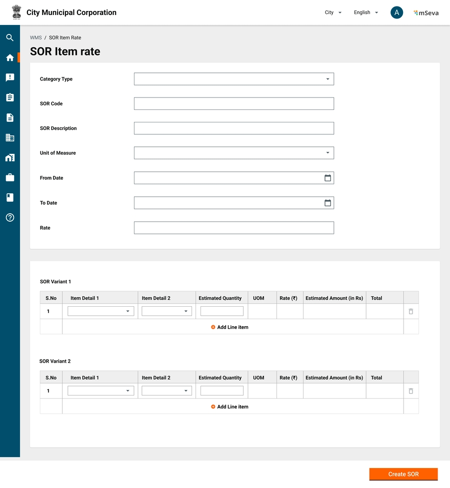 SOR is a line item that represents the rate for a single unit of work. SOR is defined by the Central PWD or state PWD and is revised based on the market needs from time to time. In general, there are about 3000+ SOR line items.