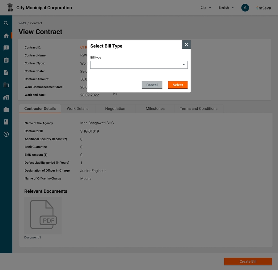 Contractor Bill Creation