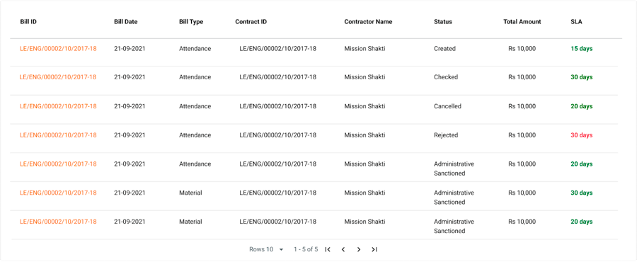 Once the payments are made, respective bill line items will be updated with statuses. Once all bill line items are updated, the overall bill will be updated with status.