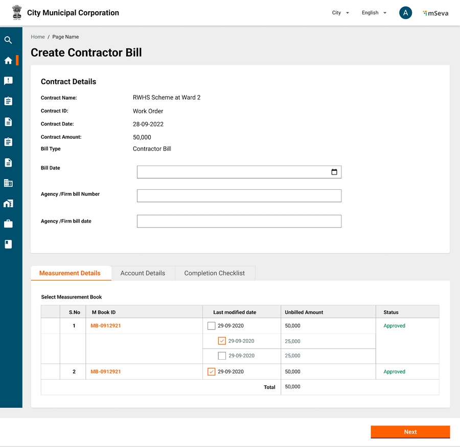 When a user selects to pay a contractor bill, the user can select against which measurement books of the contract this bill is being raised, and accordingly bill amount will be calculated.