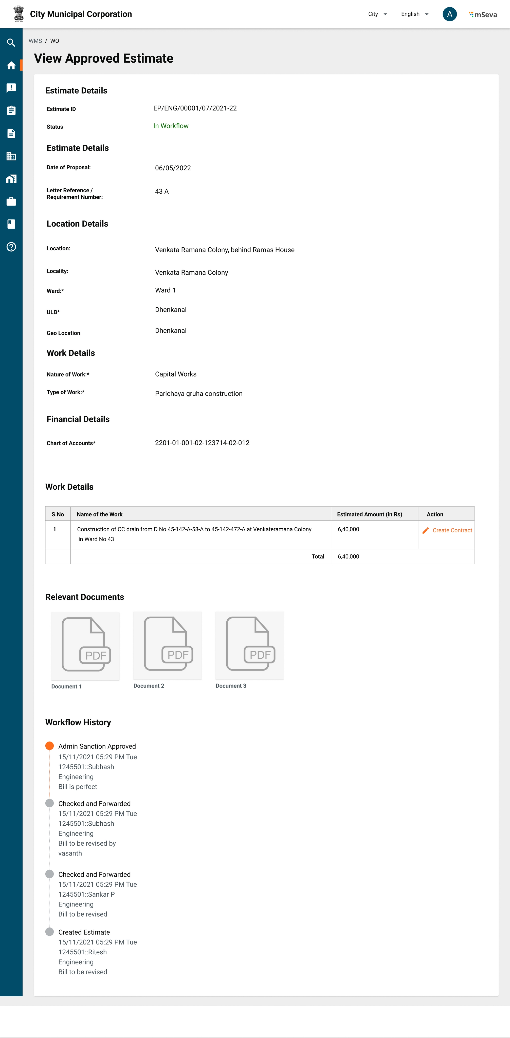 Create Contract will have link to create contract from view approved estimate sub Estimate table screen.