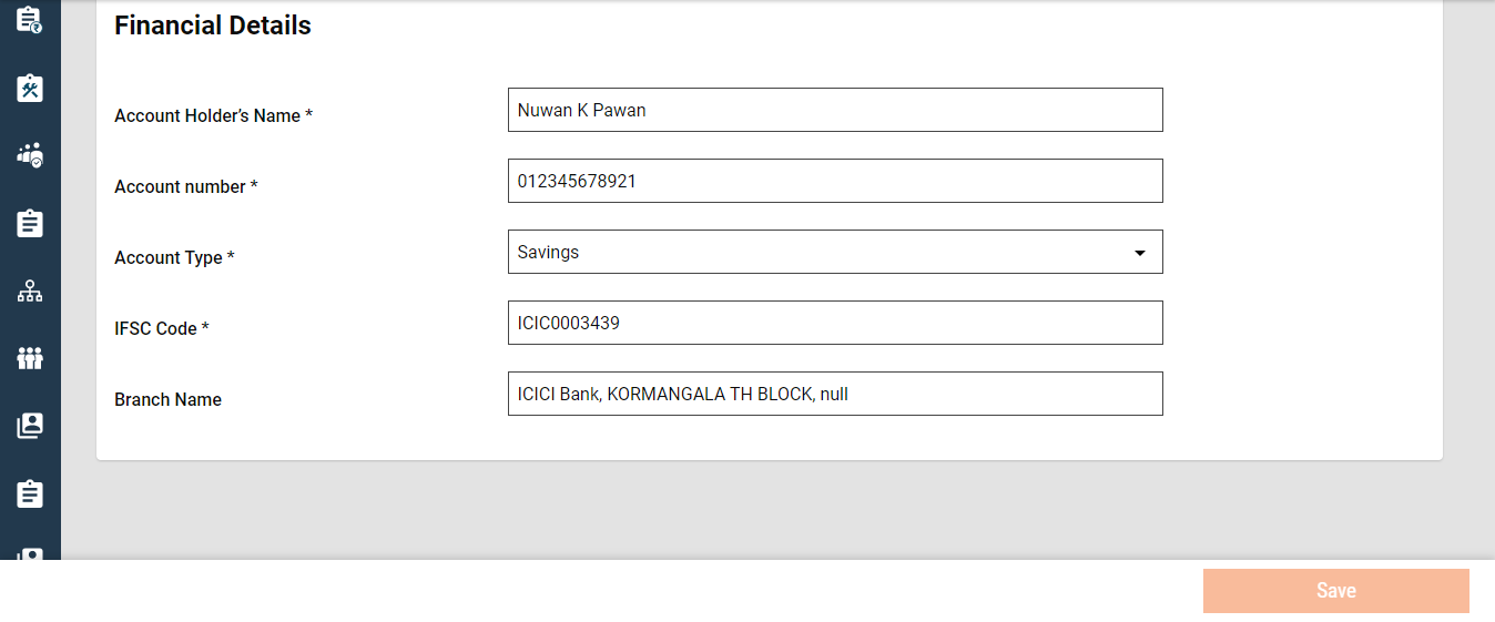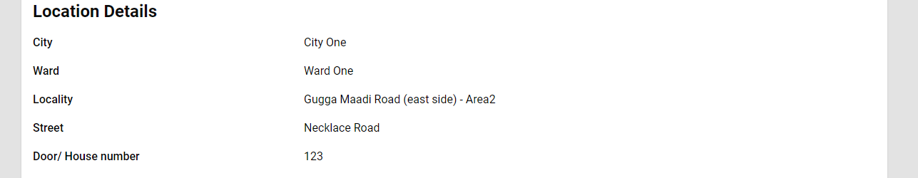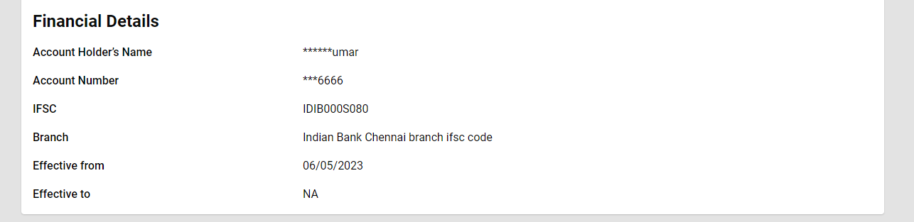 Once you have filled all details and clicked on Search, it displays the following details:
