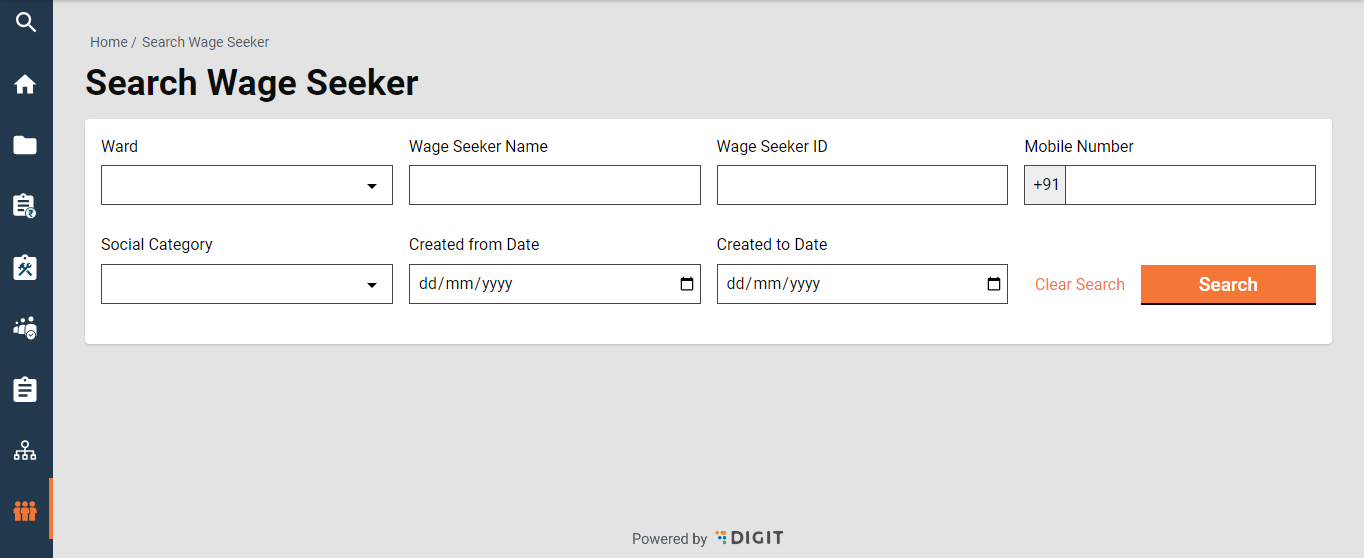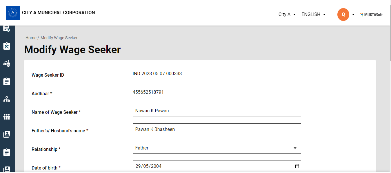 Sidebar Menu/ Homepage > Wage Seeker > Search Wage Seeker > Wage Seeker Result > Wage Seeker ID > View Wage Seeker > Modify Wage Seeker