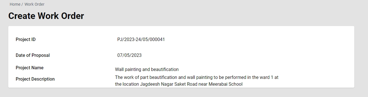 The Approver verifies the work order and if the documents and information provided in the work order is found satisfactory, complete and as per the guideline, the work order is approved.