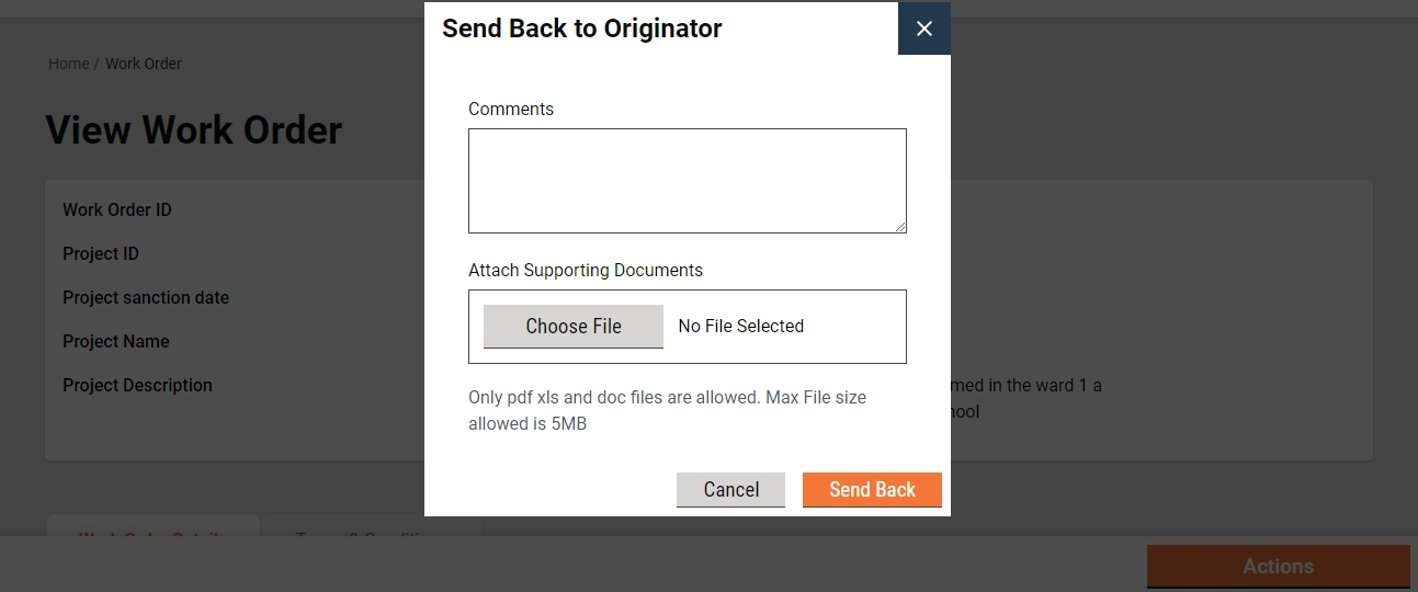 Click on the Reject button. The work order is rejected, and a notification is sent to the WC informing the same.